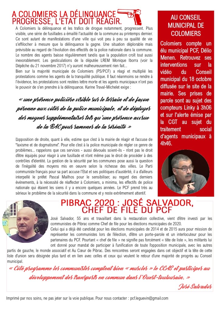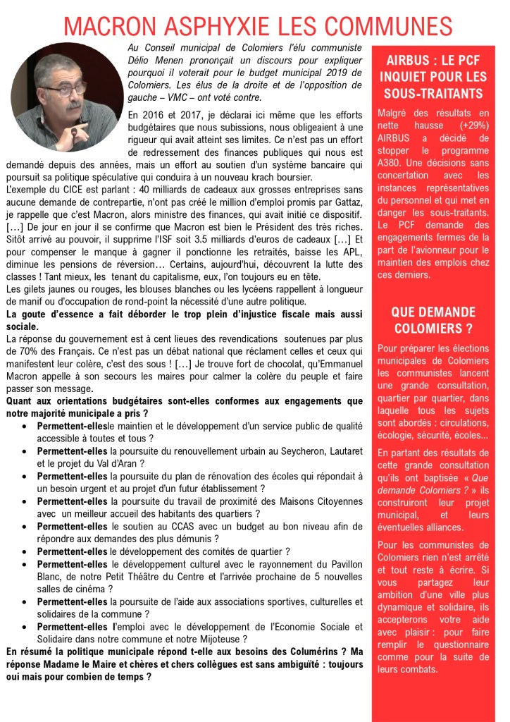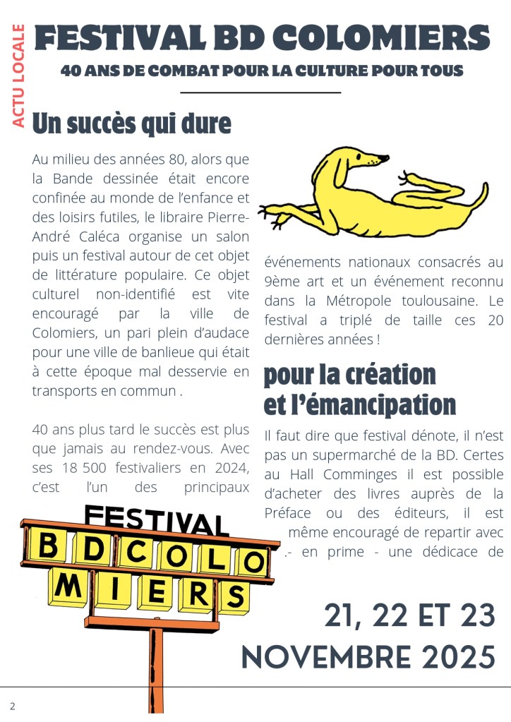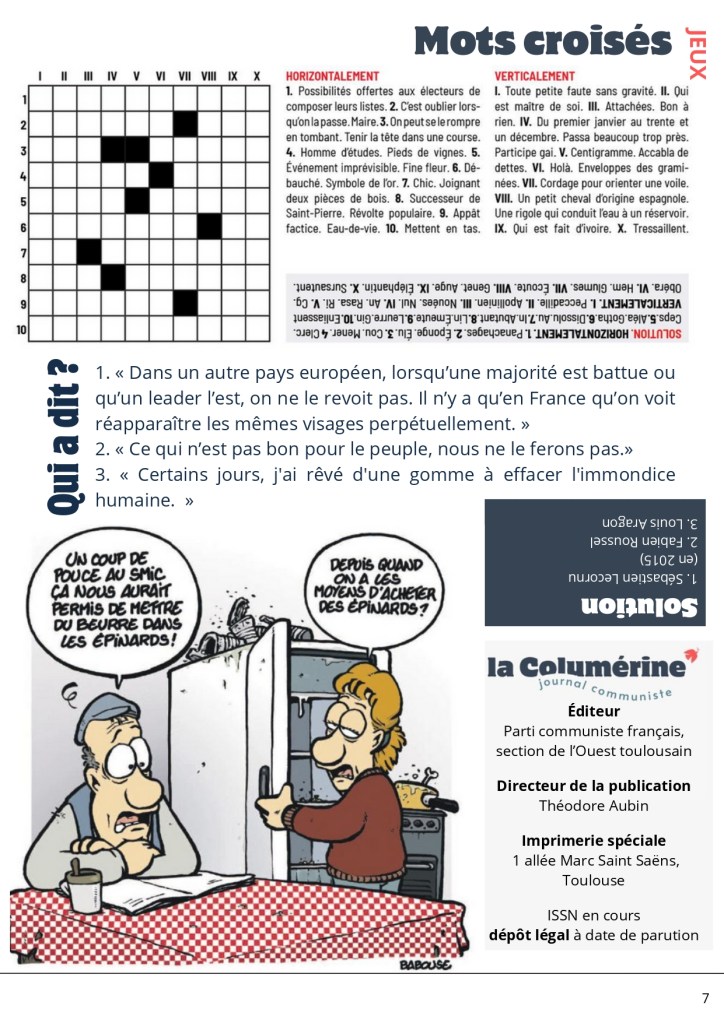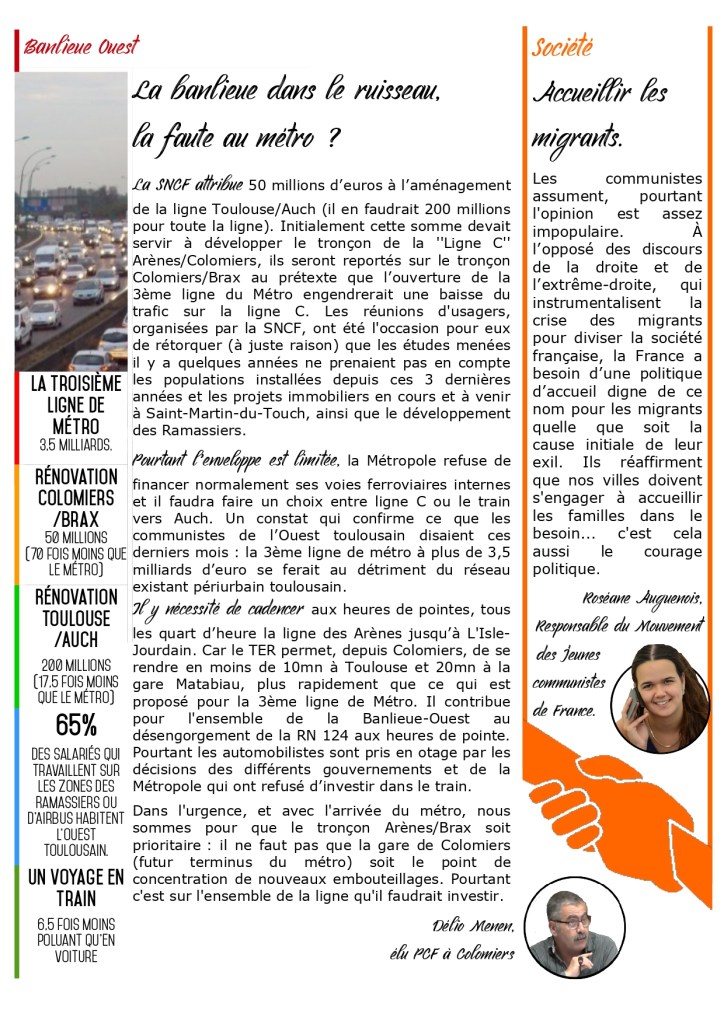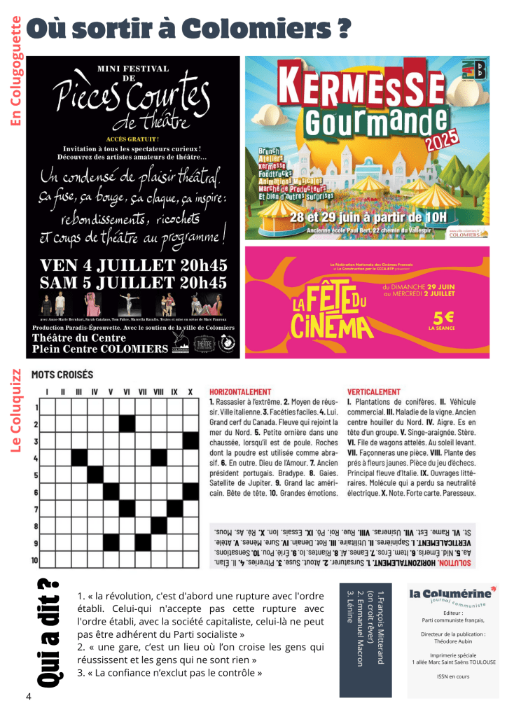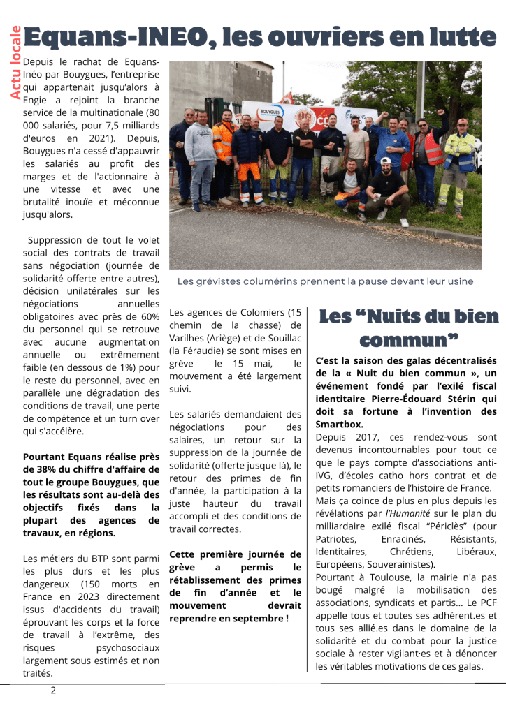 La Columérine c’est le journal communiste de Colomiers, vous y retrouverez tous les mois l’actualité de votre ville, les luttes de ses habitants et nos propositions pour la commune. Depuis 2025 elle remplace nos anciens journaux, Le Colucoco et Les Nouvelles de l’Ouest.